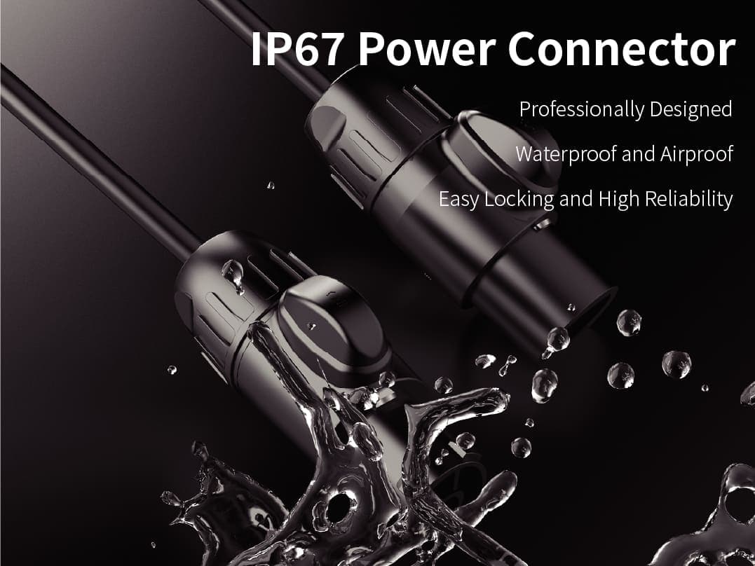The IP67 waterproof power connector has a newly upgraded appearance with double waterproof system, convenient locking and high reliability.